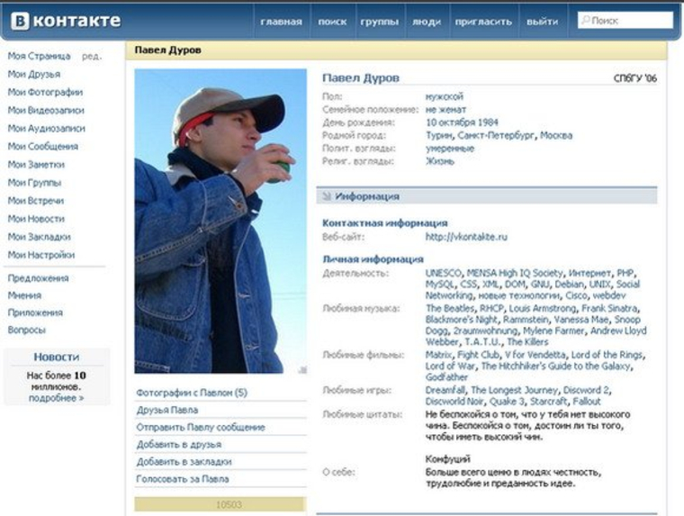 Здесь, можно посмотреть информацию о пользователе, его друзей, музыку, которую он любит слушать, видео, которые пользователи добавляют на свою страничку.