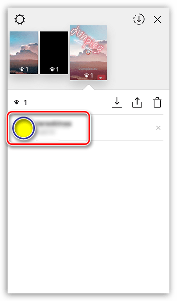 - На экране в верхней части окна отобразятся отдельные фрагменты истории – у каждого из них может быть разное количество просмотров. Переключаясь между этими фрагментами, вы будете видеть, кто именно из пользователей успел их посмотреть.
