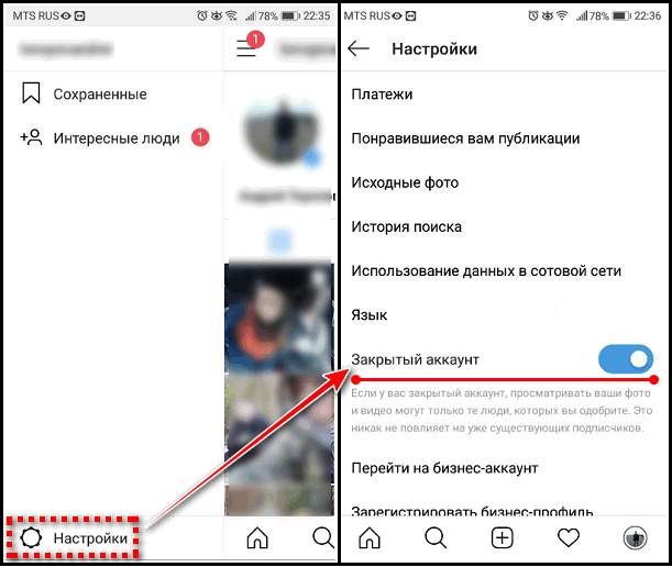 - В блоке «Аккаунт» проверьте, активность пункта «Закрытый аккаунт». При необходимости, отключите его.