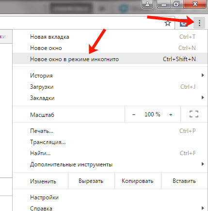 Откройте новое окно в режиме инкогнито в браузере Google Chrome