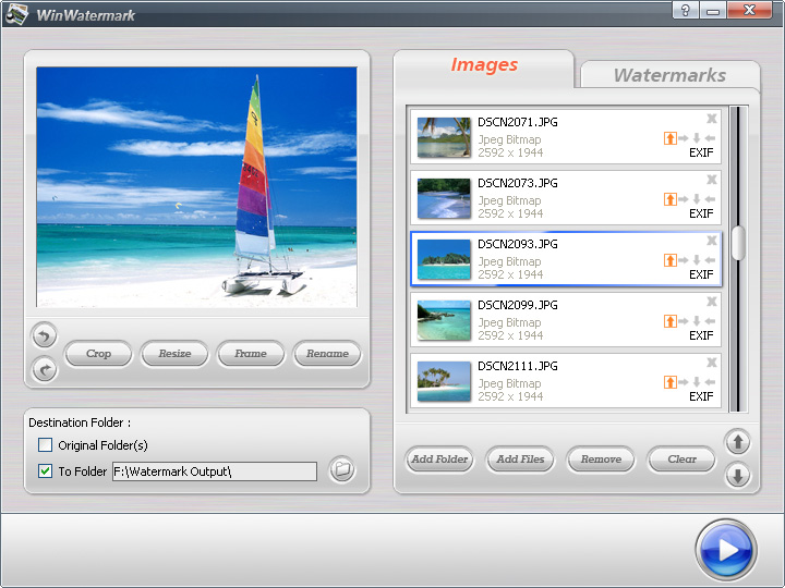 Очень простая и небольшая утилита французского происхождения для вставки водознака в фотографии и изображения. Прост в использовании, удобный графический дизайн и возможность создать веб-галерею. В пакетной обработке вы можете изменять размер фотографий.