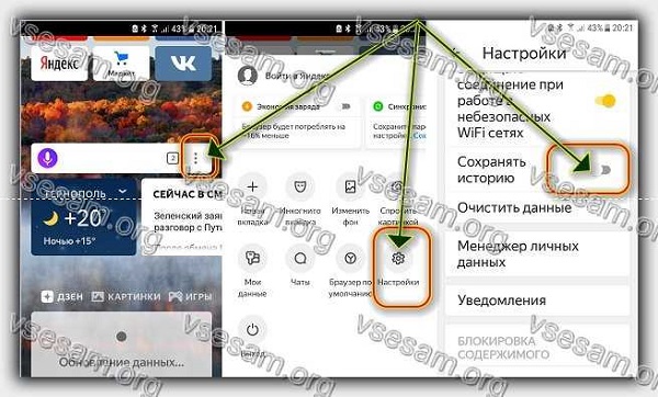 | Опера | Частный режим | Самсунг Интернет | Секретный режим |