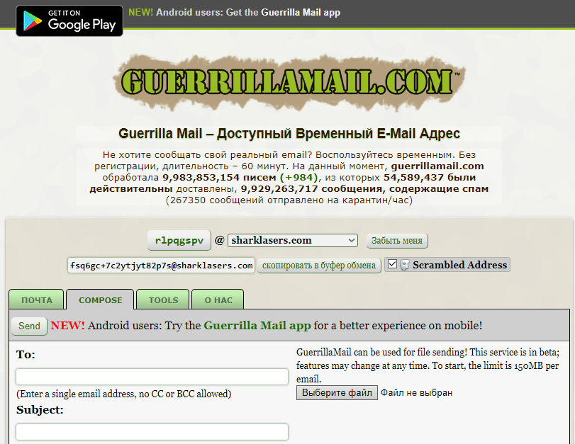 | 10minutemail | 10 минут | нет | Отвечать на письма. |