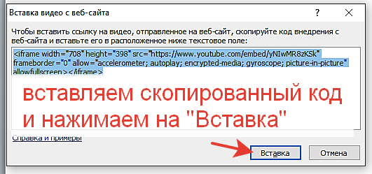 .. - Найдите и выберите нужный видеофайл, затем нажмите Вставить .