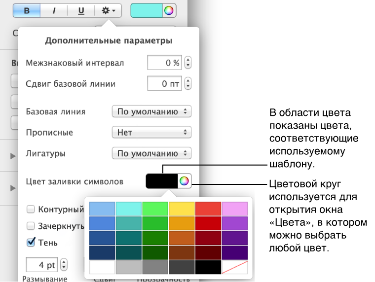 Примечание: Используйте светлый цвет выделения, если вы планируете распечатать документ с помощью монохромной палитры или принтера.