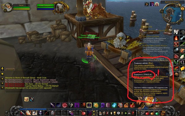 Раньше всё было нормально, а теперь время от времени сообщения в чате отображаются с задержкой, персонажи других игроков бегают на месте, заклинания не кастуются или зависает анимация каста? Значит у вас лаги. Для точного определения наличия лагов мы не рекомендуем полагаться на информацию в шкале «Задержка» в игровом меню, а провести проверку следующим образом: напишите что-то в чат, и если сообщение показалось не сразу, а с задержкой, значит у вас имеются проблемы.