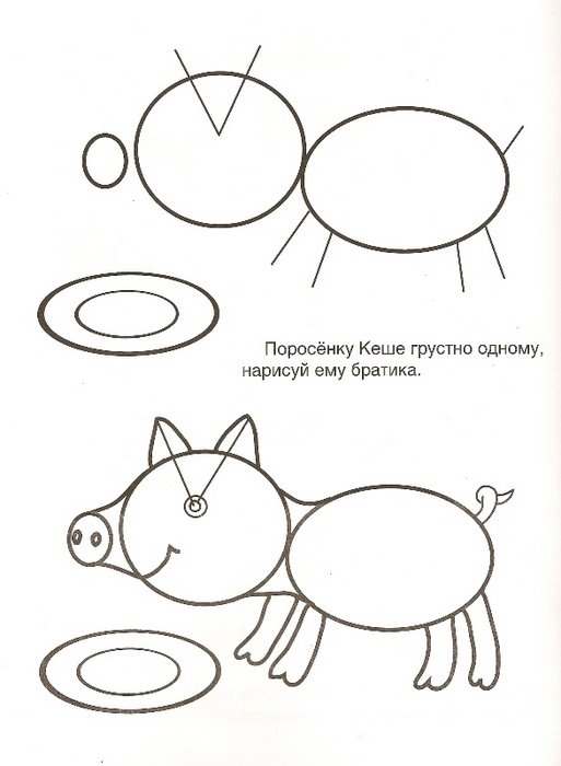Рисунки в этом возрасте включают следующие фигуры, скомбинированные по-разному: