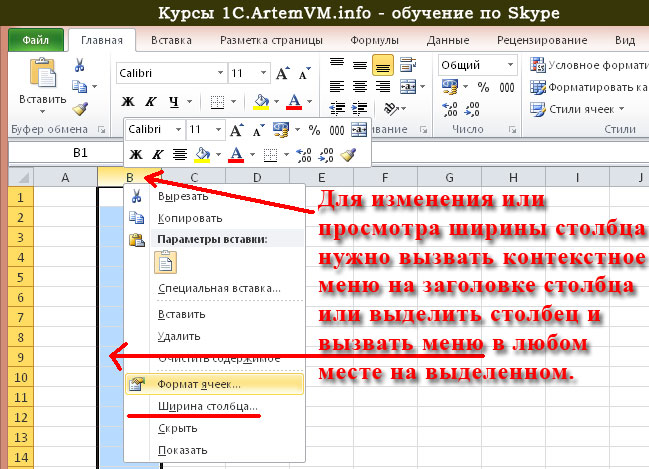 Для получения доступа к форматированию ячеек необходимо кликнуть правой кнопкой мыши в главном рабочем поле и выбрать из всплывающего меню «Формат ячеек».