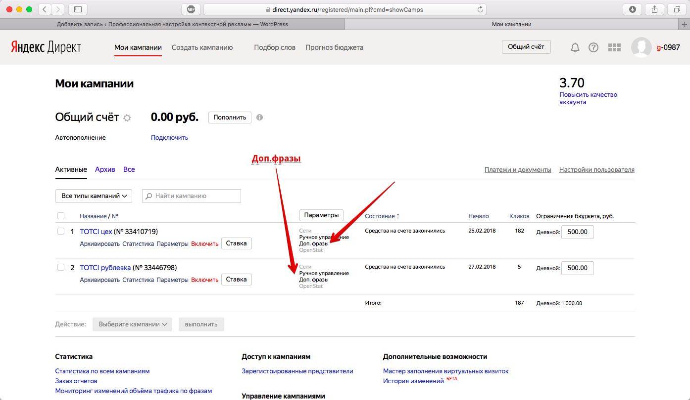 - ΠΠ°ΠΏΡΠΈΠΌΠ΅Ρ, ΡΠΌ. ΠΎΡΡΠ΅Ρ Β«ΠΠΎΠΈΡΠΊΠΎΠ²ΡΠ΅ Π·Π°ΠΏΡΠΎΡΡΒ»: Π²Ρ ΠΌΠΎΠΆΠ΅ΡΠ΅ Π΄ΠΎΠ±Π°Π²ΠΈΡΡ ΡΠ°ΠΌΡΠ΅ ΡΡΡΠ΅ΠΊΡΠΈΠ²Π½ΡΠ΅ Π·Π°ΠΏΡΠΎΡΡ Π² ΠΊΠ»ΡΡΠ΅Π²ΡΠ΅ ΡΠ»ΠΎΠ²Π° Π²Π°ΡΠ΅ΠΉ ΠΊΠ°ΠΌΠΏΠ°Π½ΠΈΠΈ.