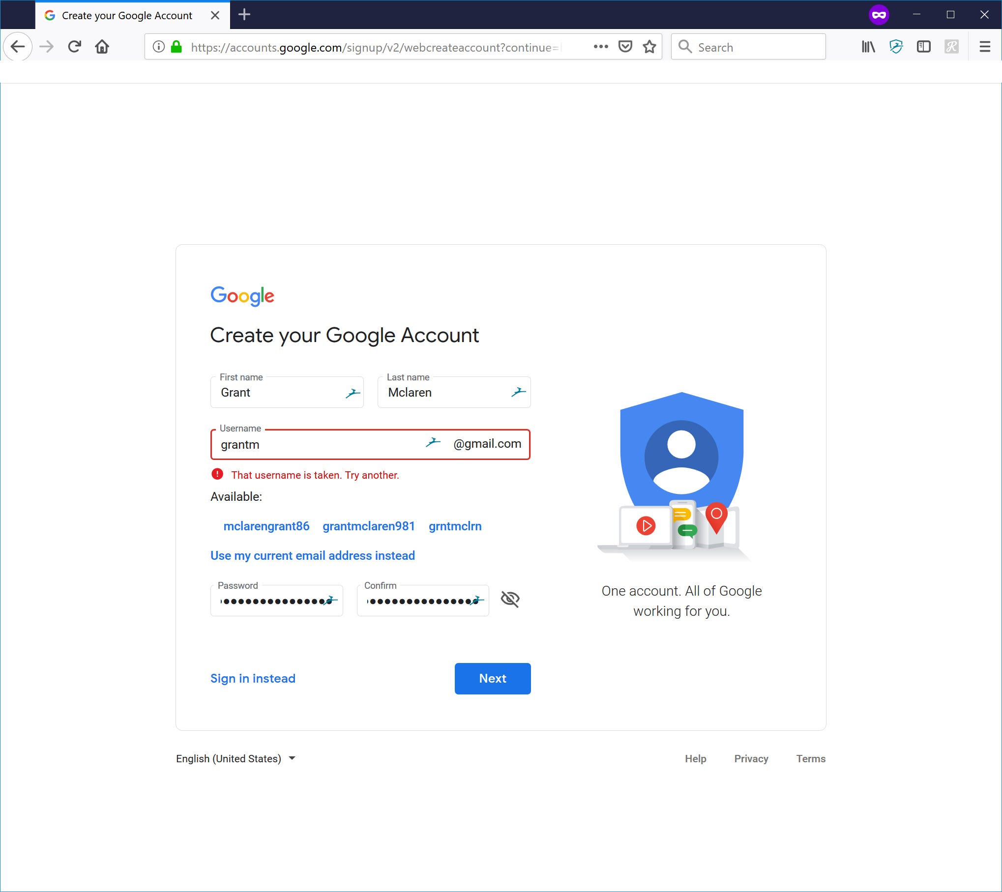 В тот же день я открыл вторую учетную запись GMail, чтобы при необходимости иметь доступ к таким сервисам, как учетная запись электронной почты, даже если в ней не было никаких моих предыдущих данных.