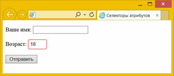 Кроме селекторов элементов мы также можем использовать селекторы их атрибутов. Например, у нас есть на веб-странице несколько полей input, а нам