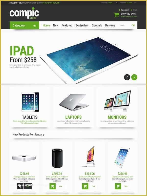 Laptops — еще один шаблон OSCommerce с классным и современным дизайном. Дизайн на 100% адаптивен и работает на всех устройствах.