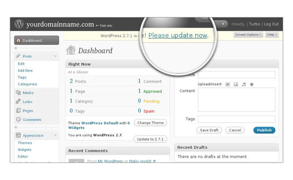 Но, к сожалению, процесс обновления несет в себе и долю негатива — с каждой новой версией создает все большую нагрузку на сервер. Для посещаемого блога это может быть существенным аргументом, чтобы воздержаться от апгрейдов, но тогда вы рискуете быть взломанными по причине более слабой защищенности старых версий.